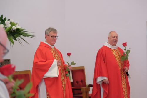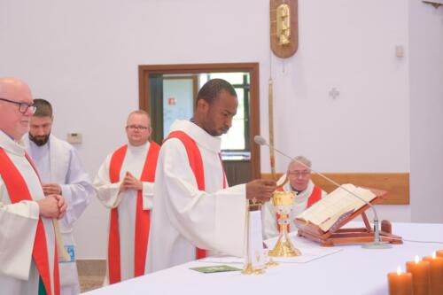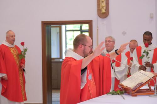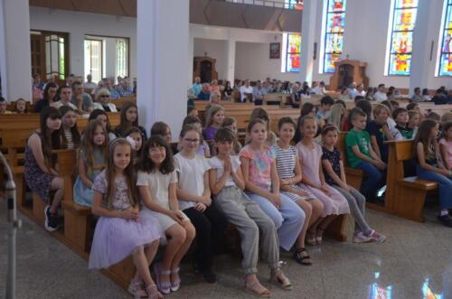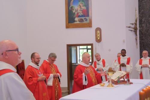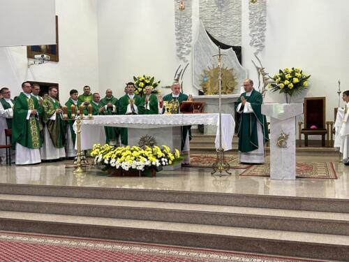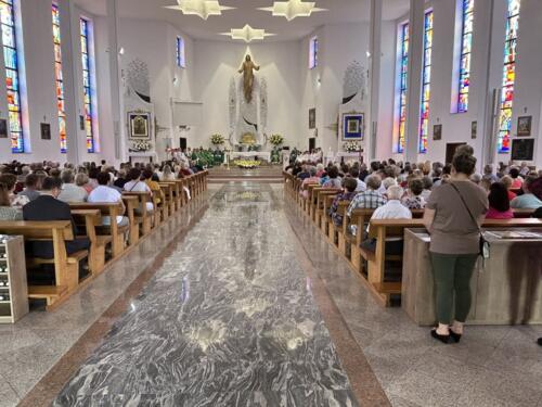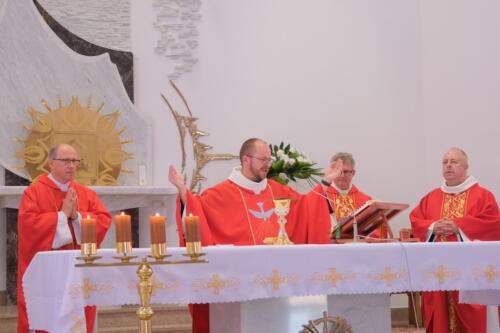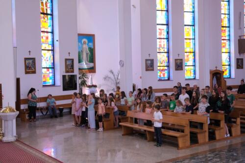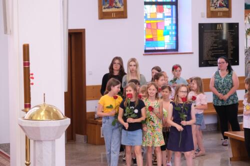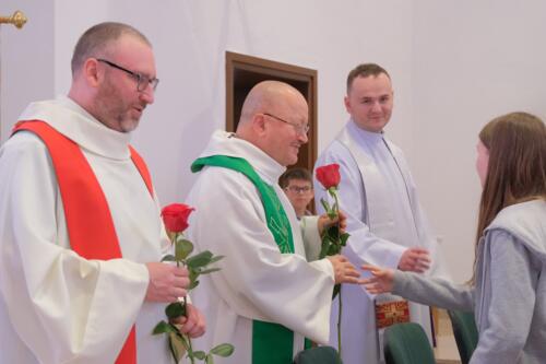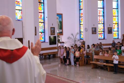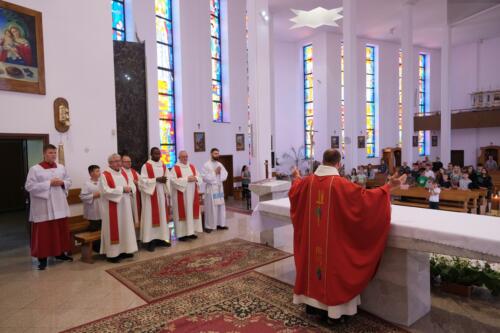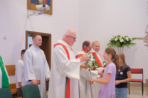 Mszę św. dziękczynną sprawowali o godz. 1200. Wraz z ojcami Augustianami modliły się dzieci ze swoimi opiekunami i księżmi, przebywające na wypoczynku w domu rekolekcyjnym. We wspólnej modlitwie uczestniczyli także nasi parafianie, dziękując za duchowe dziedzictwo Augustianów, zasiane w naszej wspólnocie.