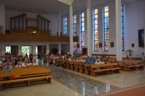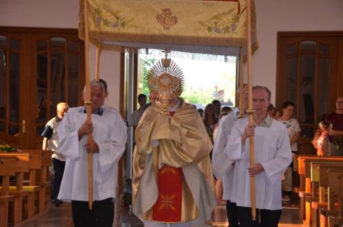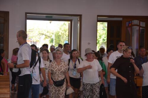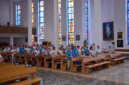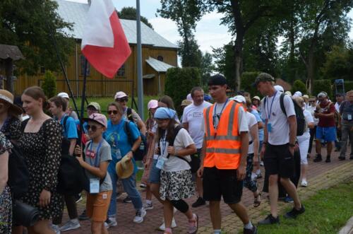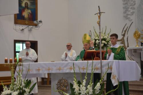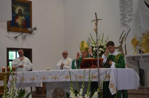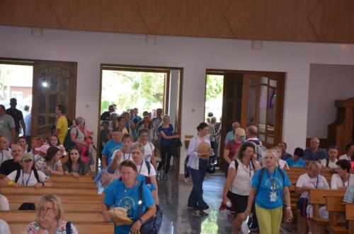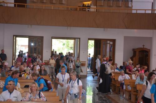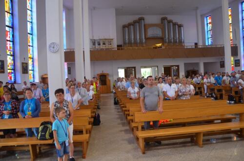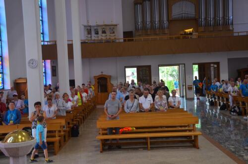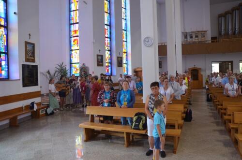 W niedzielne południe, 3 sierpnia po raz kolejny zawitali do naszego Sanktuarium Pątnicy Pieszej Pielgrzymki Janowskiej. Po krótkim odpoczynku pielgrzymi wraz z tymi, którzy dołączyli do pielgrzymki, uczestniczyli we Mszy św. którą sprawował i Słowo Boże wygłosił ks. Biskup Edward Frankowski. Biskup zachęcał zebranych wiernych do wierności Ewangelii i budowaniu społeczności w oparciu o ewangeliczne zasady. Po zakończonej Mszy św. Pątnicy mogli się nieco posilić, gdyż Panie z Żabna, Radomyśla i Nowin przygotowały bardzo urozmaicony poczęstunek. Każdy z Pątników i gości miał okazje skosztować lokalnych specjałów.